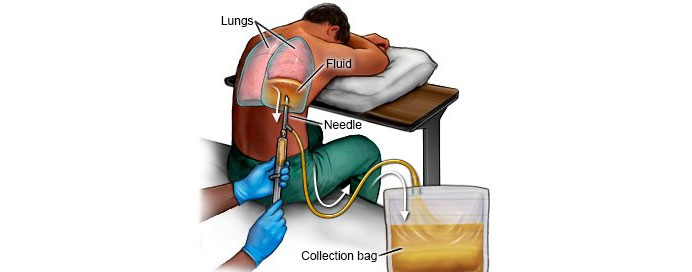 - A fine needle or catheter is inserted into the pleural space.